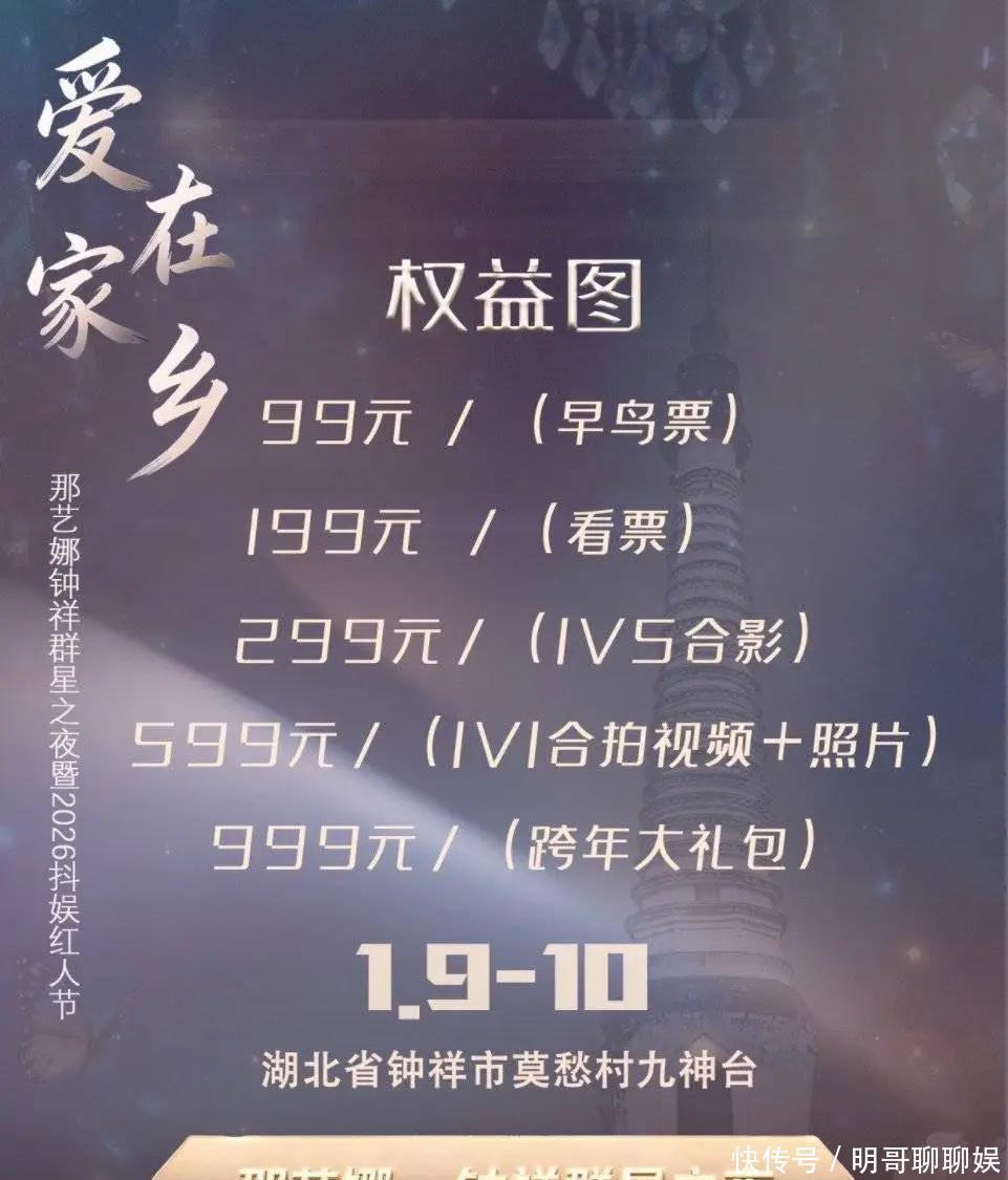 据悉,这两场演唱会都选在当地一个景区里举行,票价最贵要999元一张,最便宜的也得99元。价格高的套餐里还包括跟名人单独见面、一起拍视频、合影这些活动,能圆了大家追星的梦。
